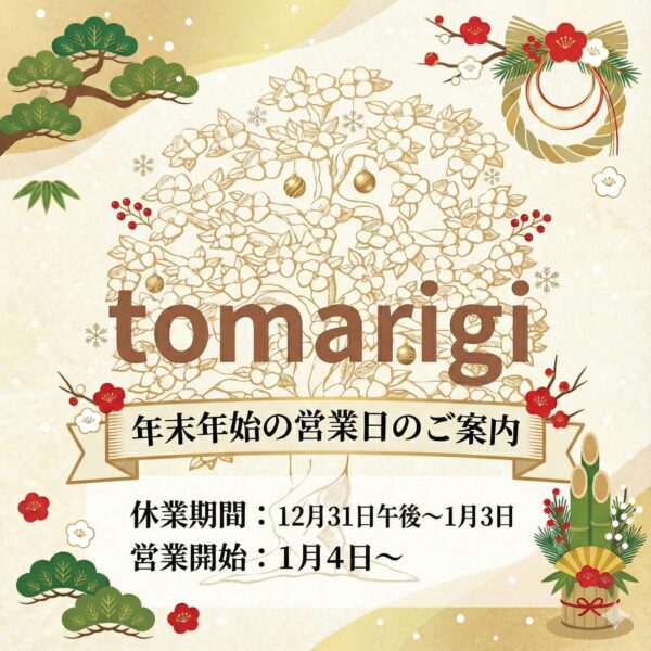 休業期間:12月31日(火)午後 ~ 1月3日(金)